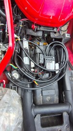 Next was the wiring. I fitted the control unit under the seat and I had to splice a single wire into the switched side of one of the coils, I chose the vertical because it was easiest to get at. The only other wires were a connection to a switched ignition supply and a connection to earth, I used the OEM accessory socket. The actuator and handlebar switches simply plugged into the connectors from the control unit. Getting all the wires under the seat was a quite a squeeze as there were two additional wires for options that I didn’t need.  Finally I mounted the push button assembly to the LH handlebar.